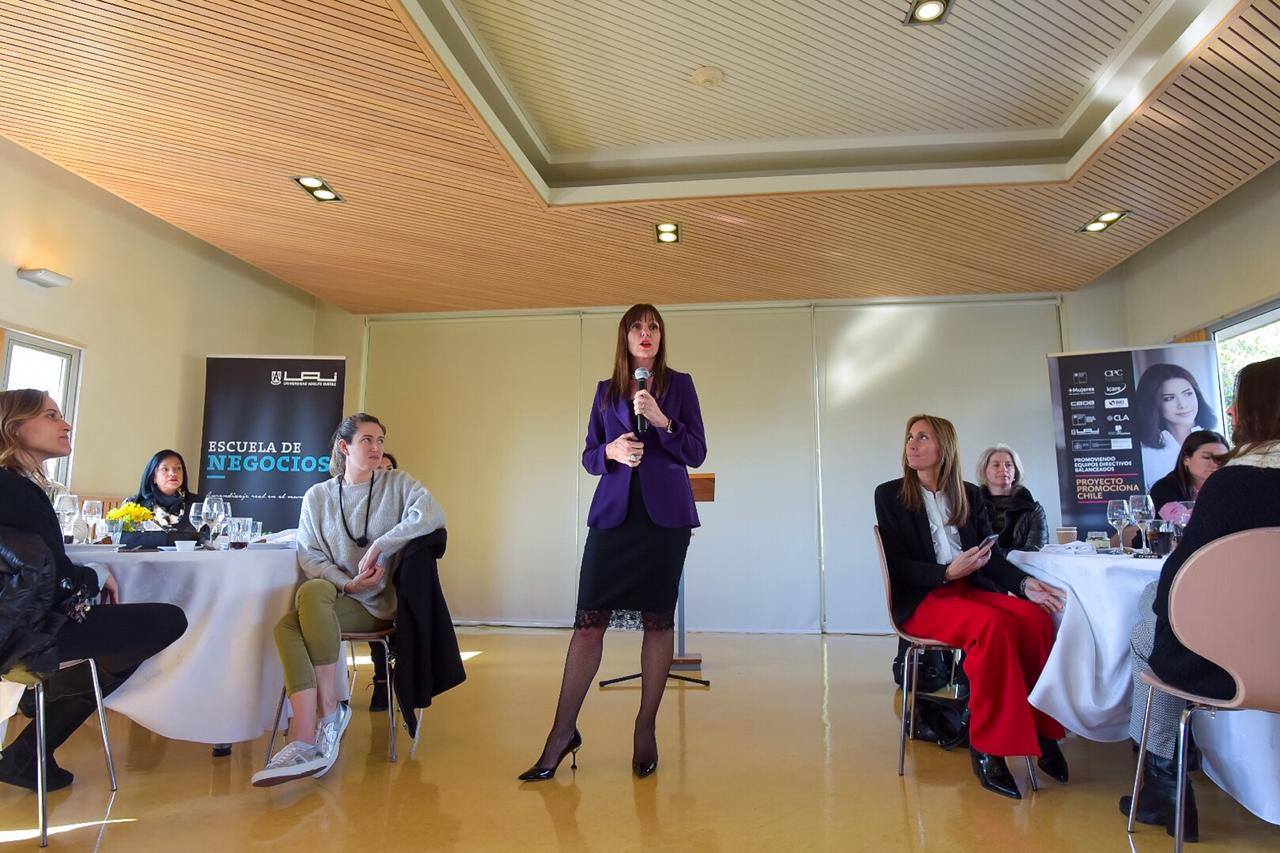 Tras las palabras del rector Harald Beyer, la vicerrectora académica de la Universidad Adolfo Ibáñez y mentora del programa, Soledad Arellano, compartió algunos consejos con las alumni.